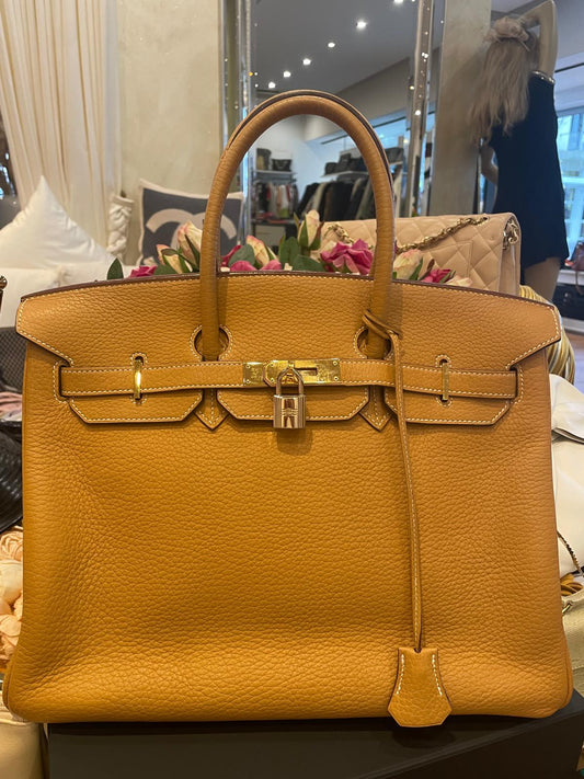 Hermès - Birkin Bag 35 Retourne Clemence Natural Golden Hardware