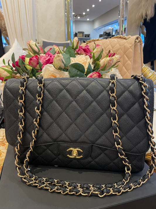 Chanel - Jumbo Schwarz Caviar Leder Goldene Hardware