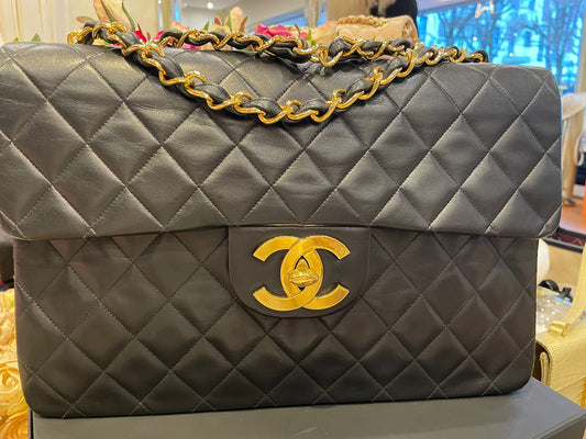 Chanel - Vintage Tasche Large schwarz Goldene Hardware