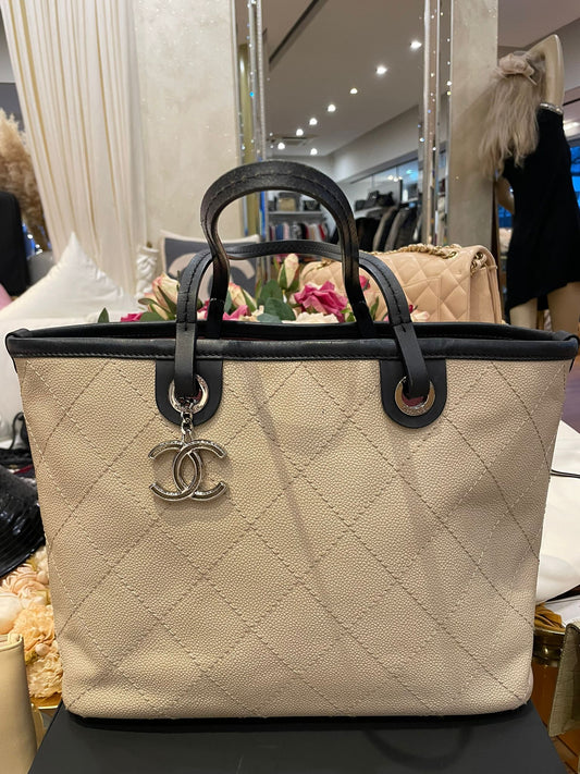 Chanel - Shopper Caviar Leder Sand Silberne Hardware