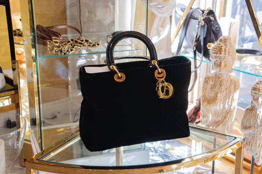 Dior - Lady Dior Tasche Groß Samt in schwarz