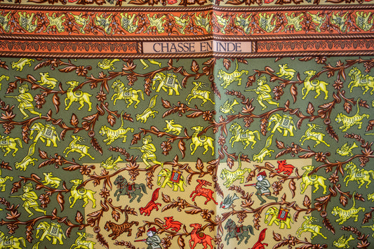 Hermès - Green Chasse En Inde Silk Carré 90