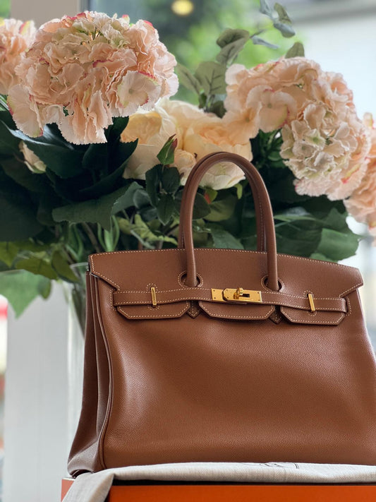 Hermès - Birkin Bag 35 gold mit goldener Hardware Epsom Leder