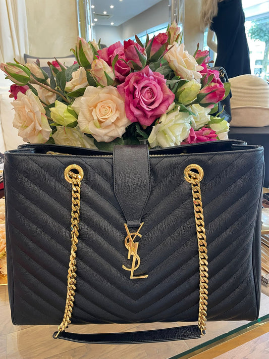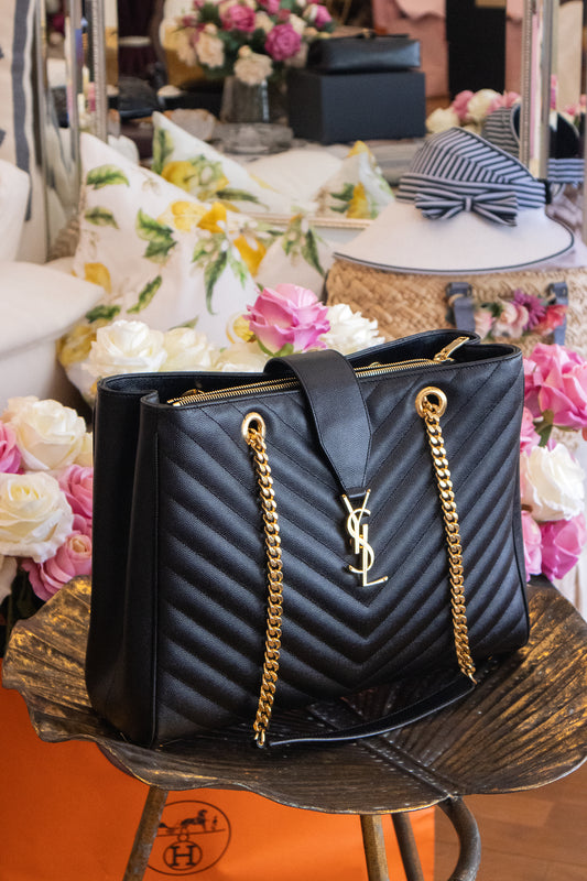 Yves Saint Laurent - Cassandre Chevron Leather Chain Shopper
