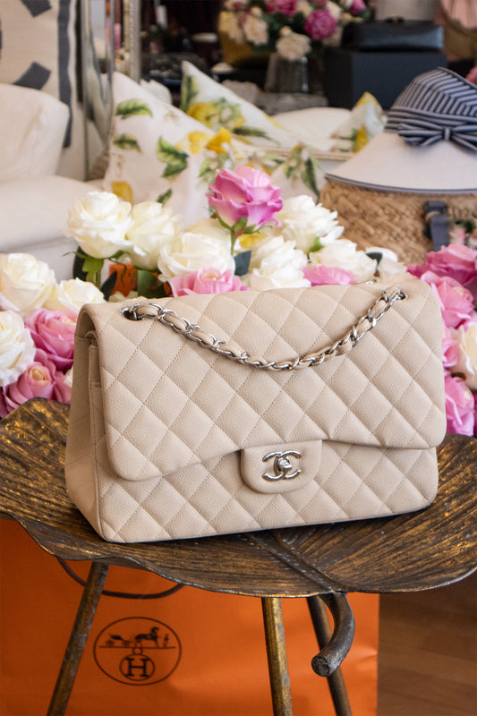 Chanel - Classic Double Flap Jumbo Caviar-Leder in Beige