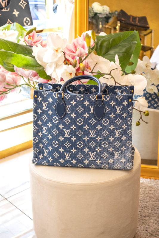 Louis Vuitton - Onthego MM Tote Bag Denim Blau