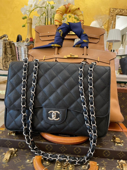 Chanel - Timeless Single Flap Maxi Jumbo Schwarz Caviar Leder