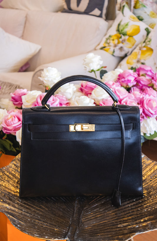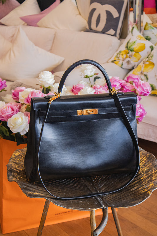 Hermès - Kelly Bag 40 Box Kalbsleder schwarz