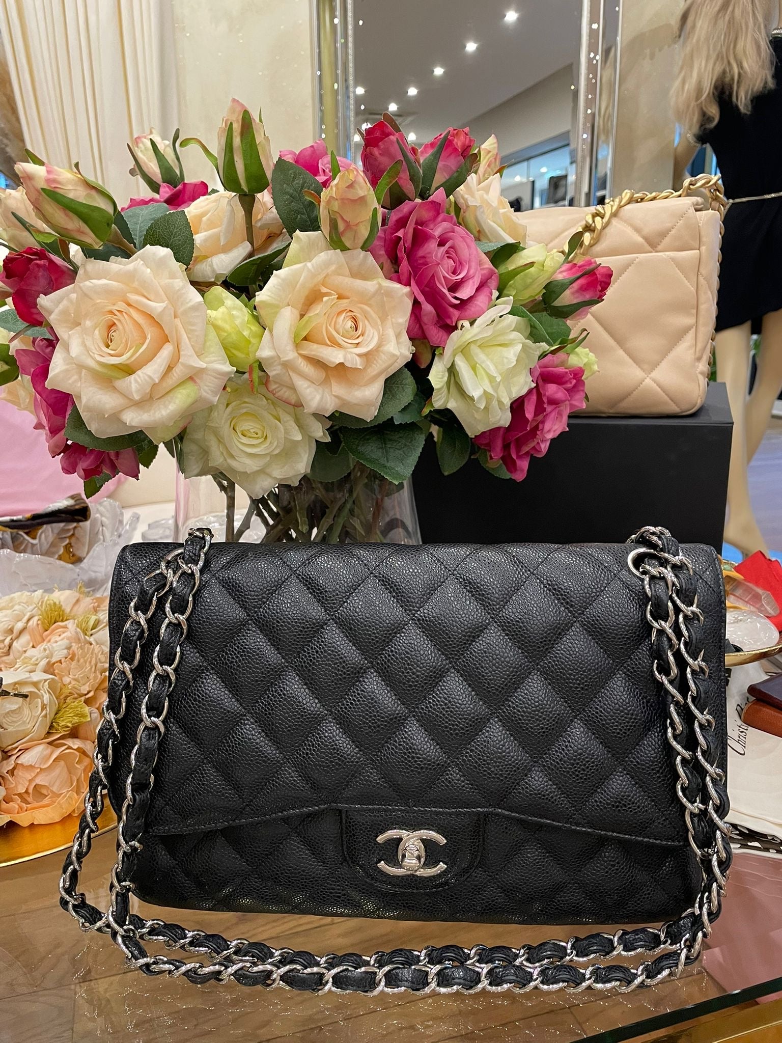 Chanel Jumbo Double Flap Bag Caviar Leder schwarz silberne Hardware