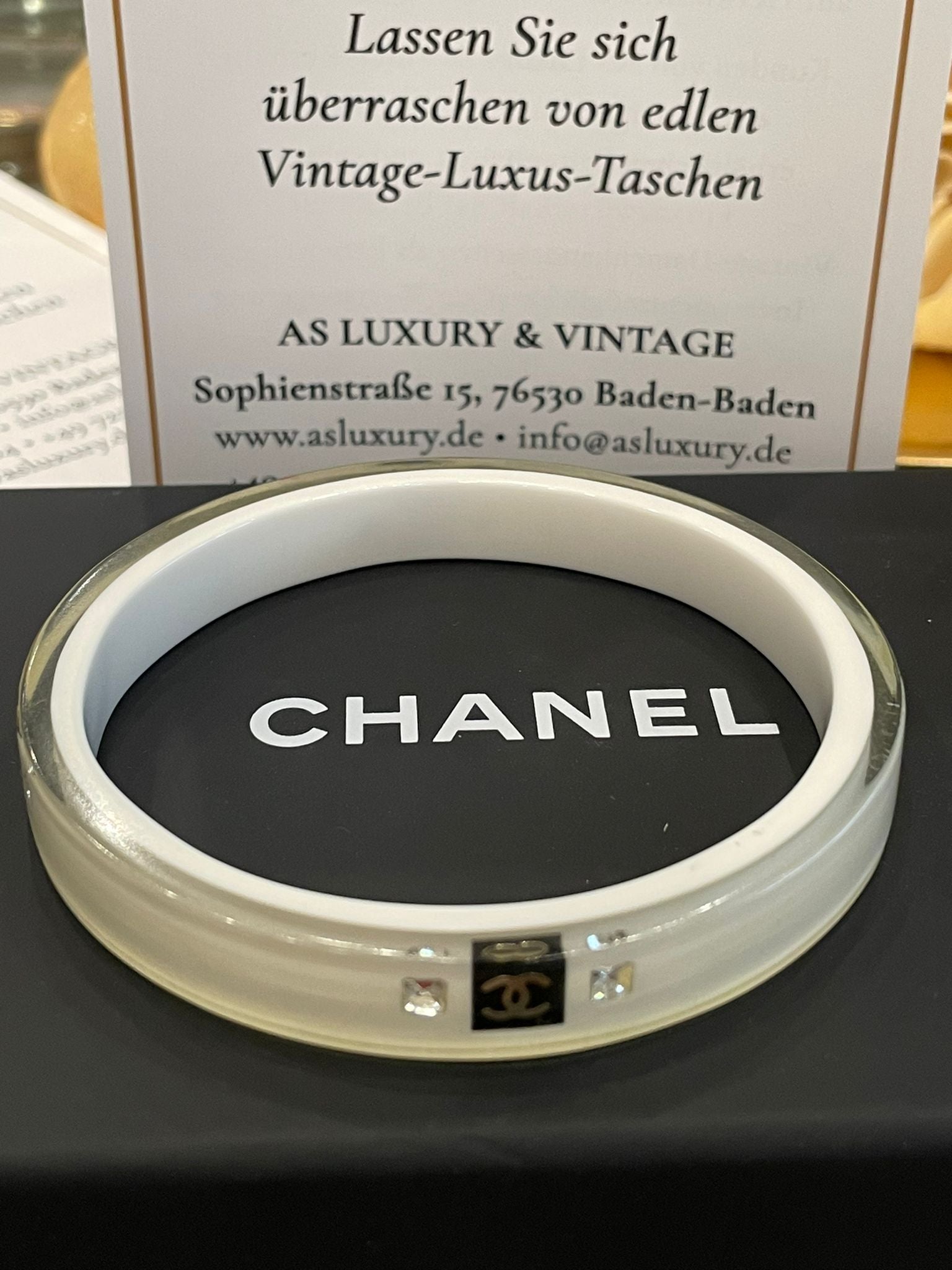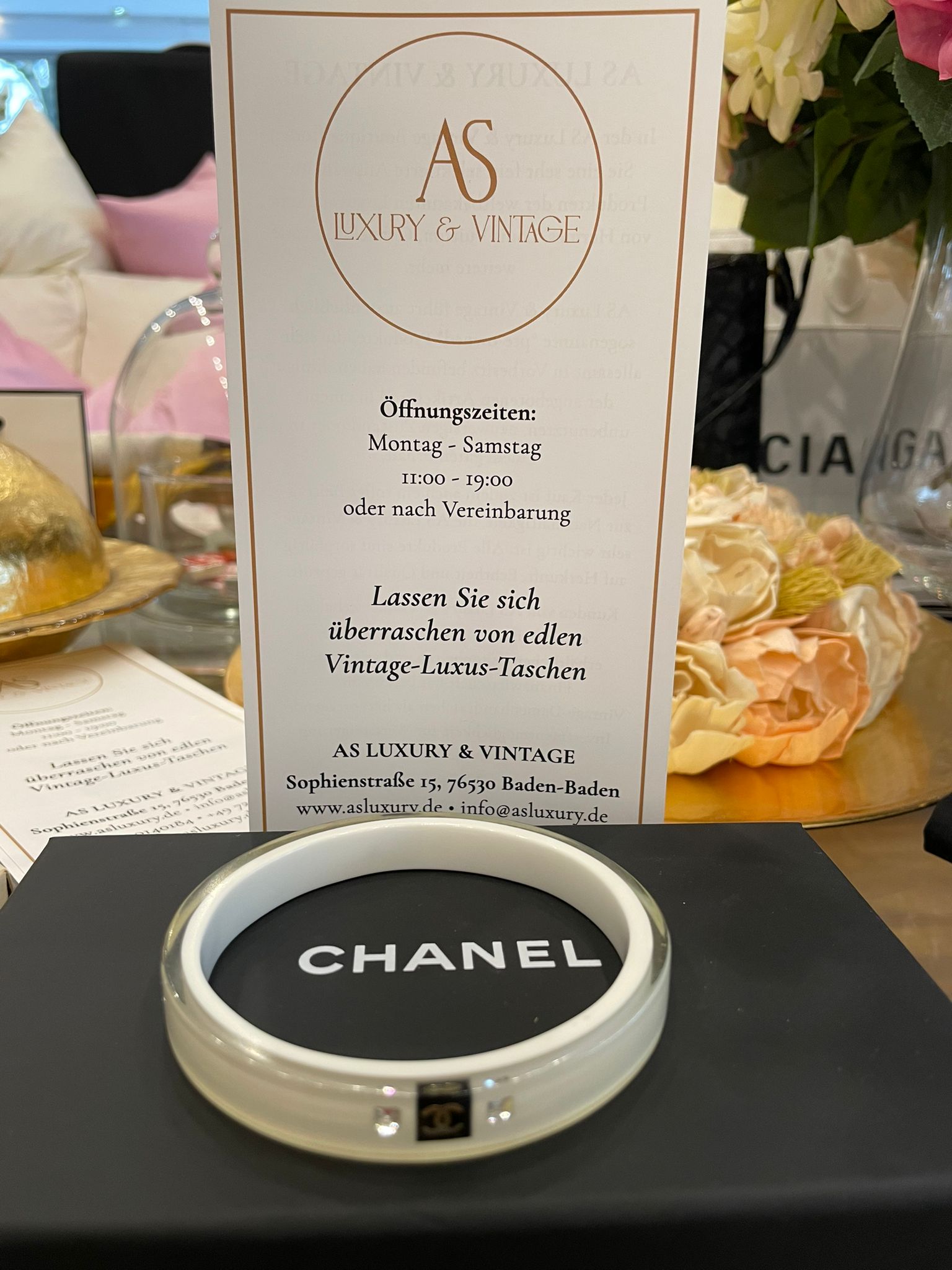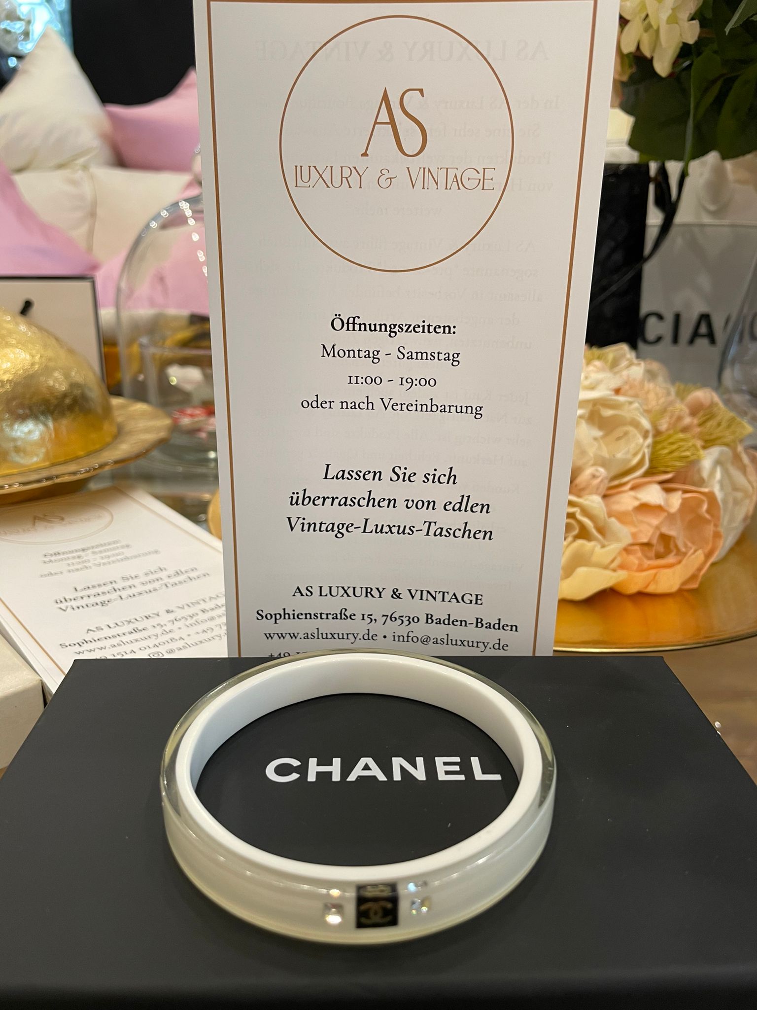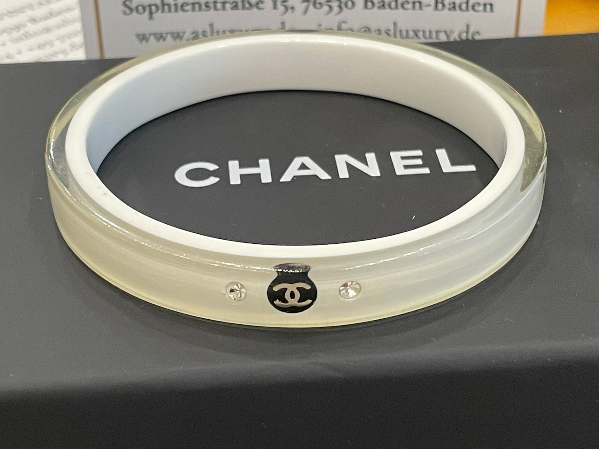 Chanel - Acryl Armreif weiß mit Glitzerstein