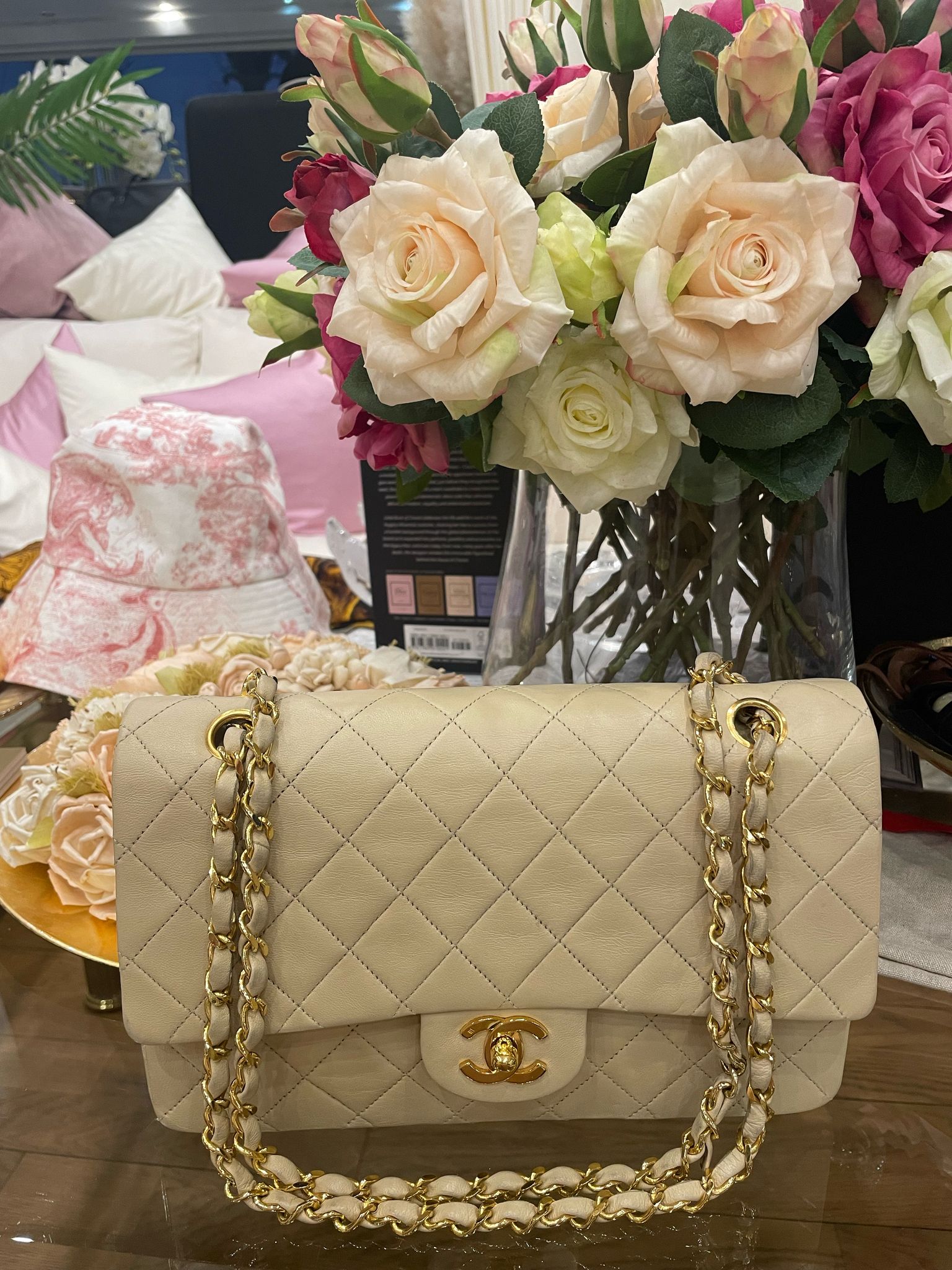 Chanel - Medium Double Flap Bag beige