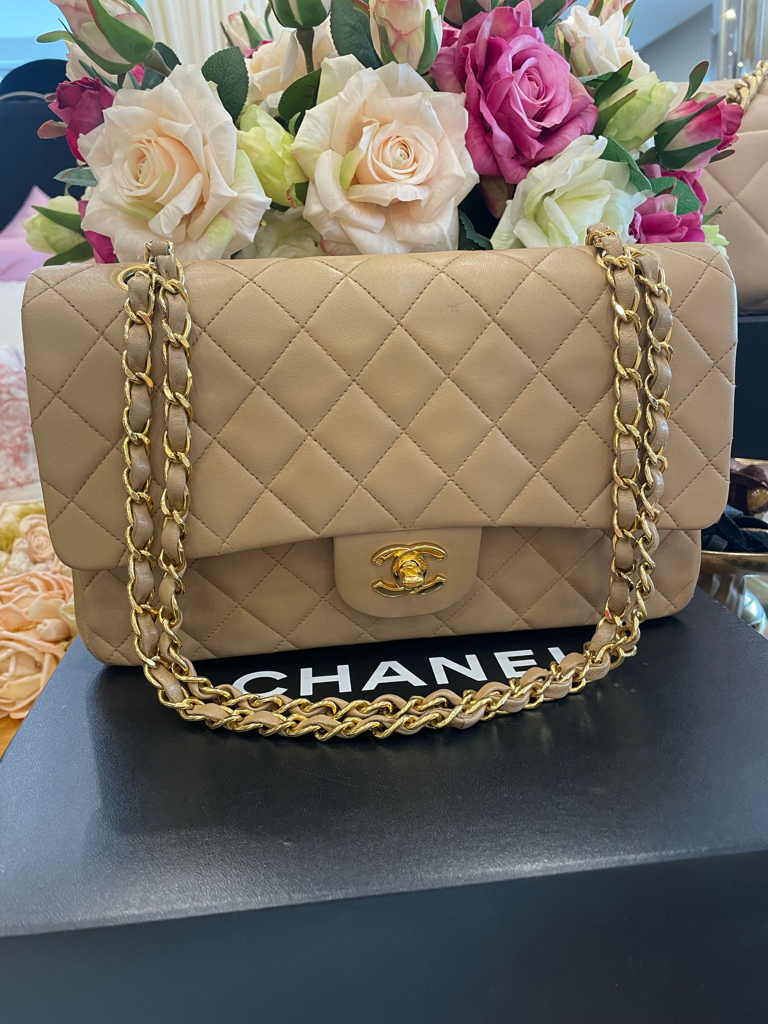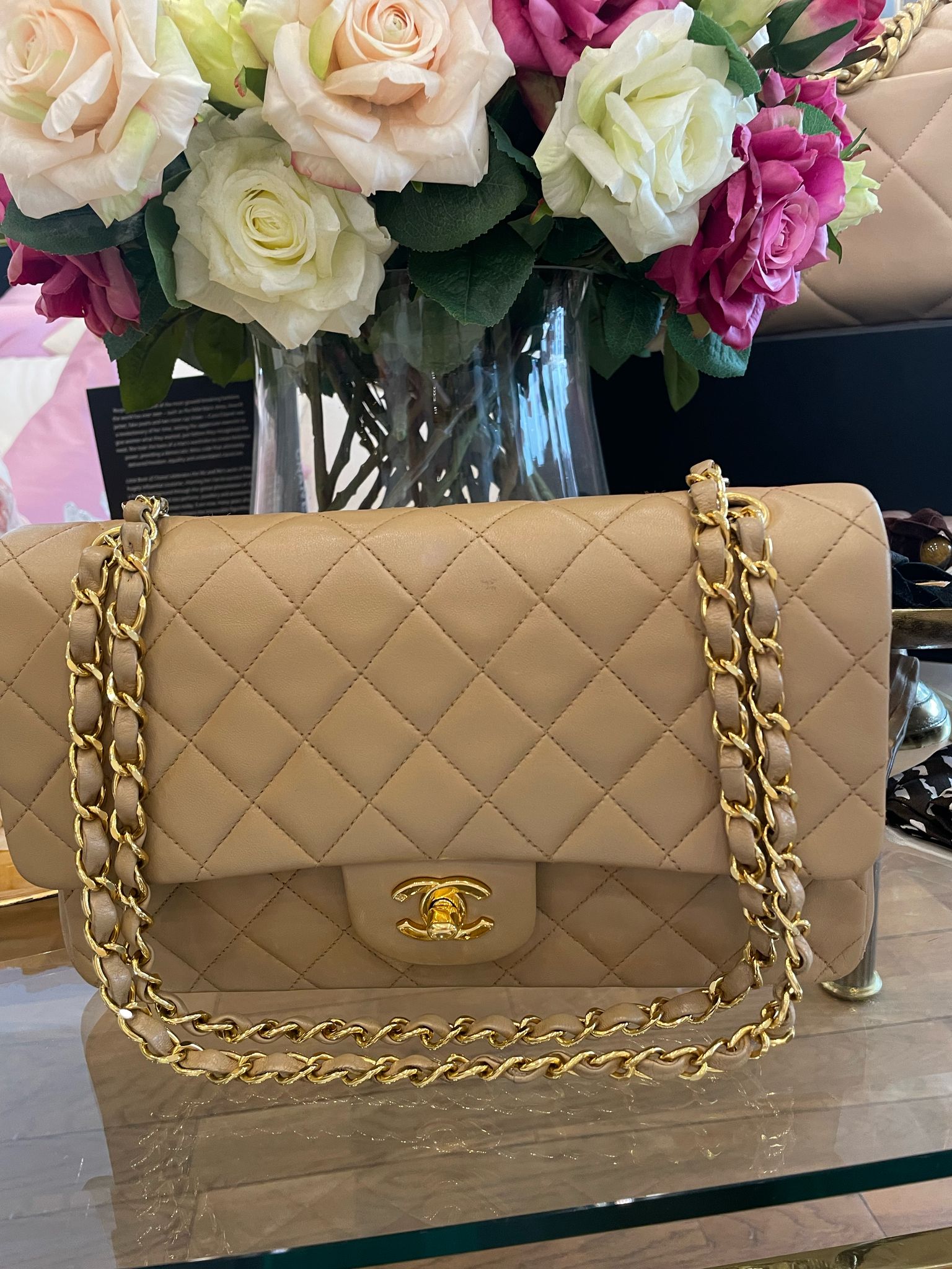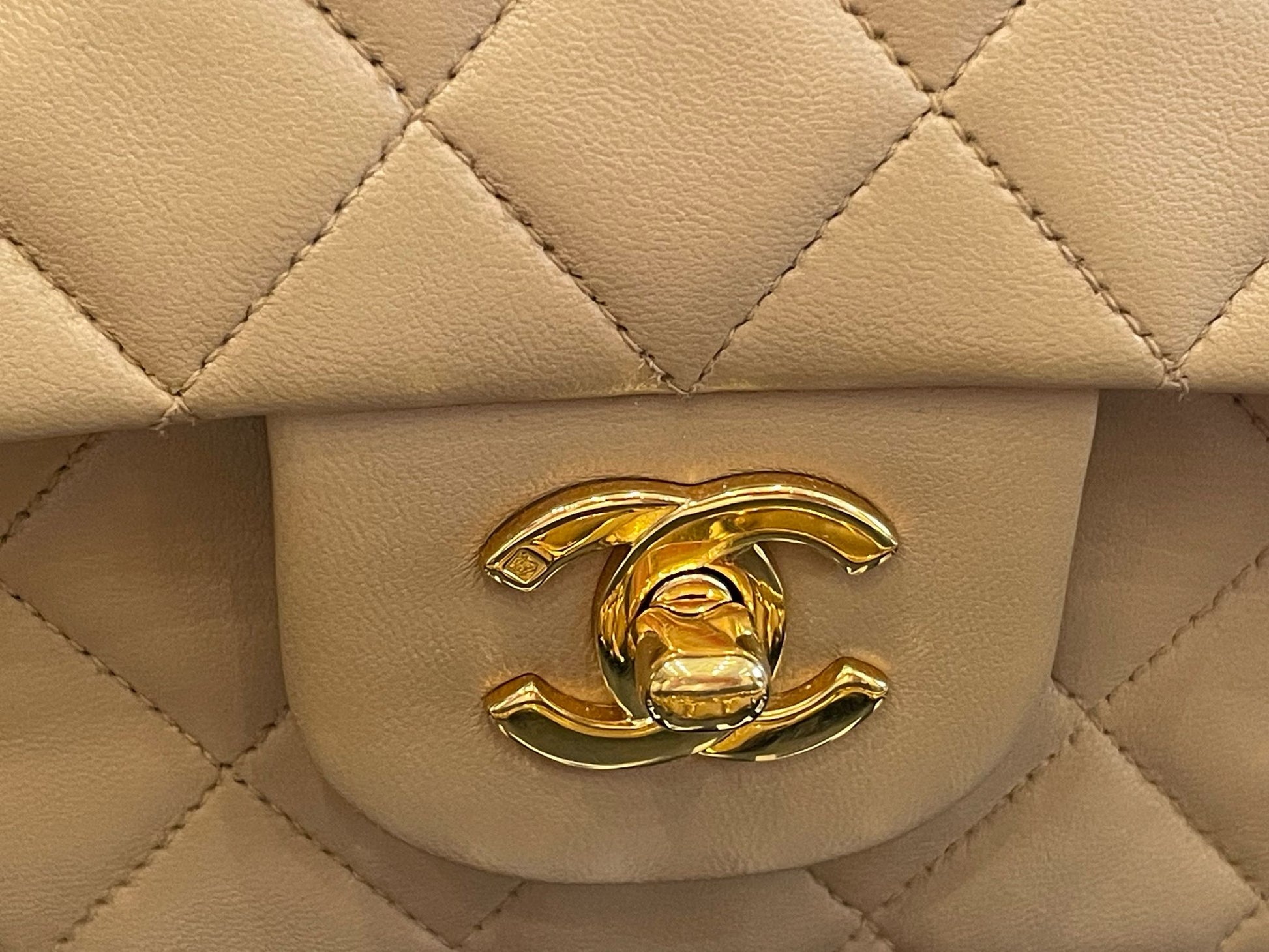 Chanel Medium Double Flap Bag Beige Goldene Hardware