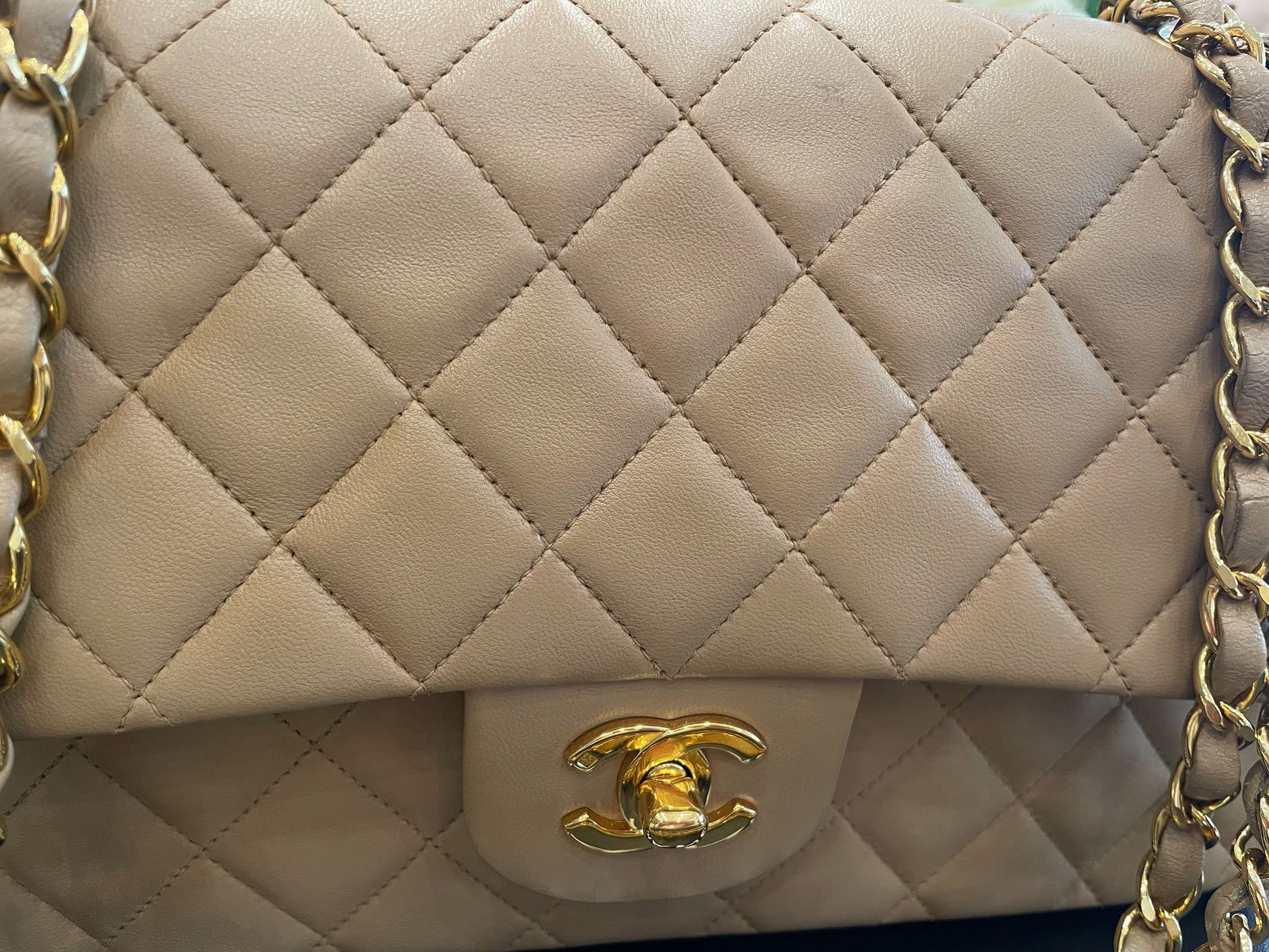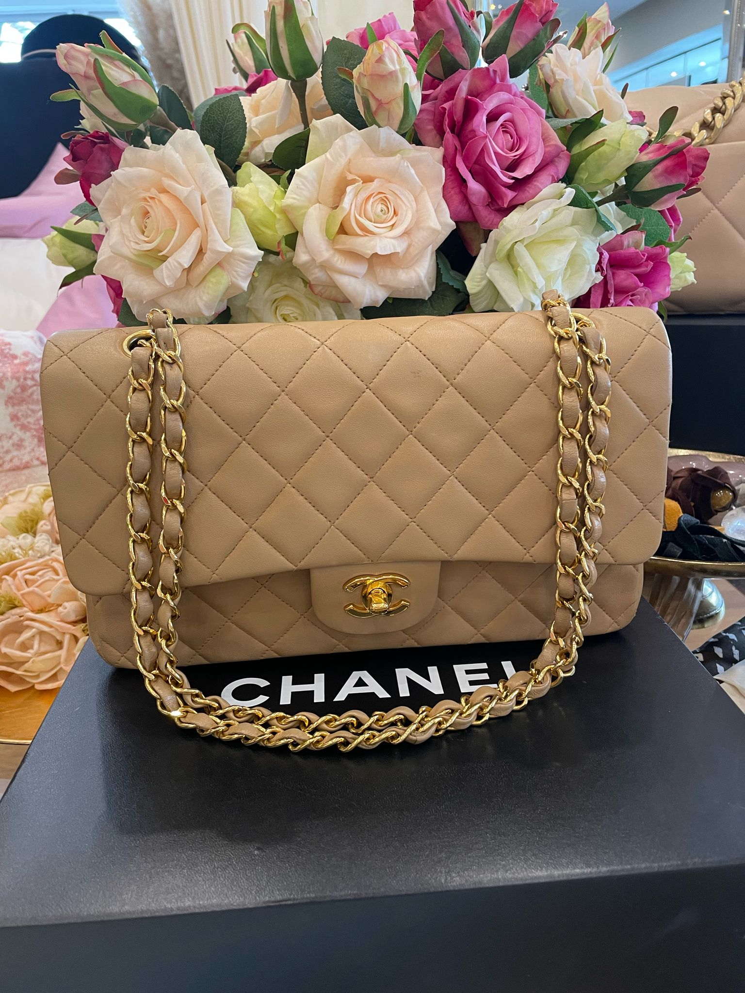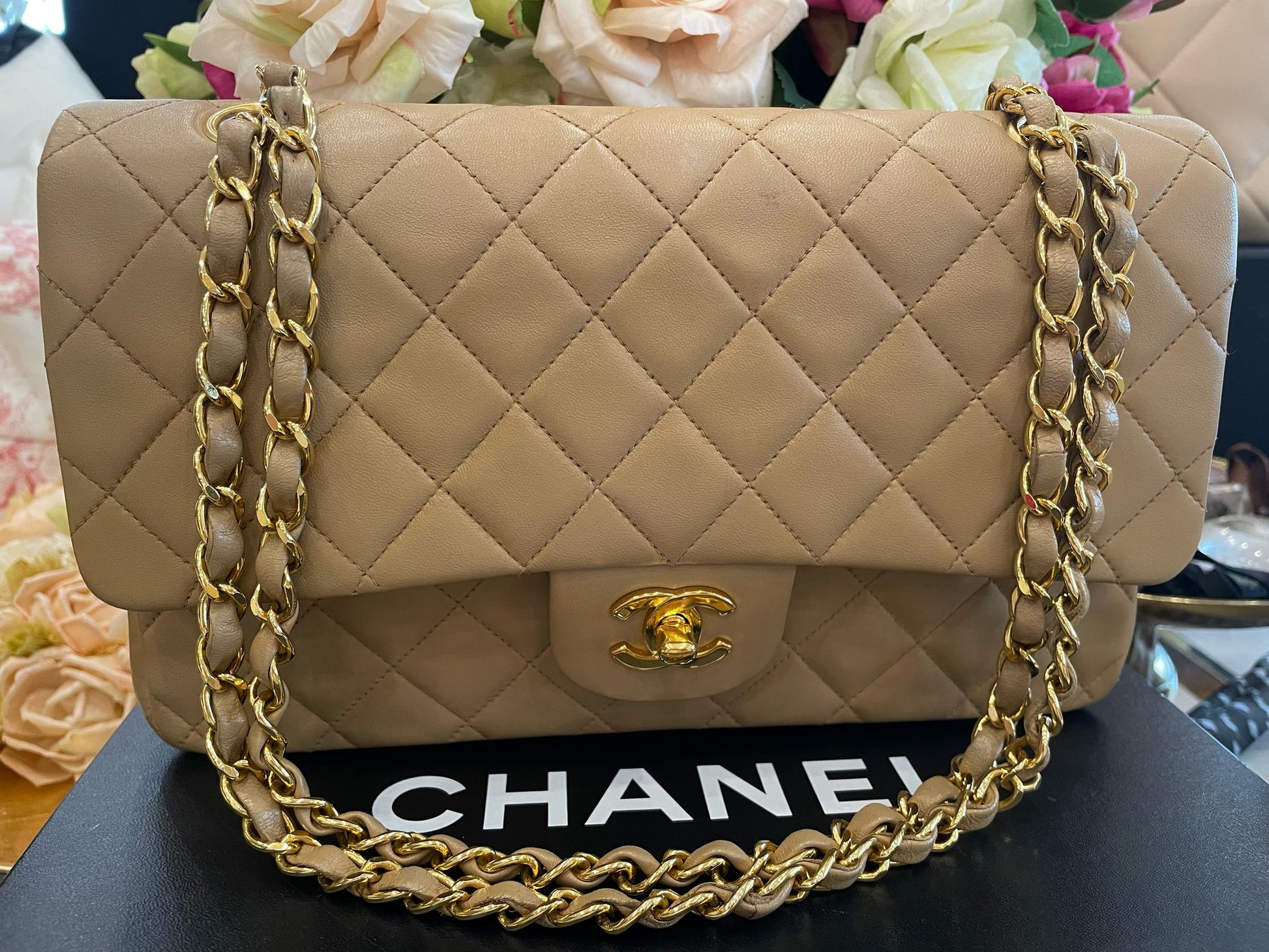 Chanel Medium Double Flap Bag Beige Goldene Hardware