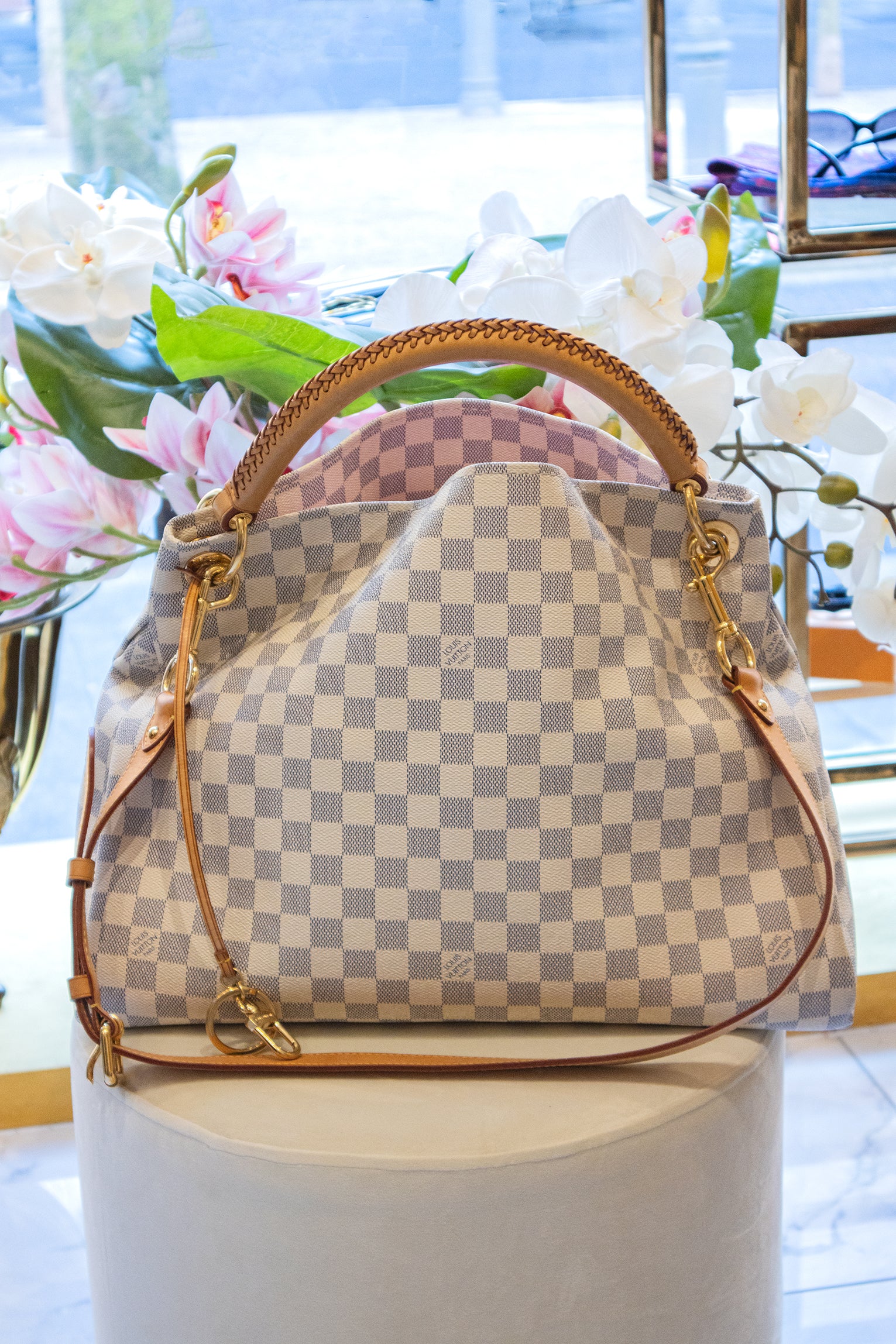 Das Design der Louis Vuitton Artsy GM Handtasche ist von der klassischen Damier Azur Canvas inspiriert, einem charakteristischen Louis Vuitton-Muster, das für seine subtile Eleganz und seinen zeitlosen Charme bekannt ist. Das helle, cremefarbene Canvas mit den charakteristischen Azurblauen Quadraten verleiht der Tasche ein frisches und feminines Aussehen.